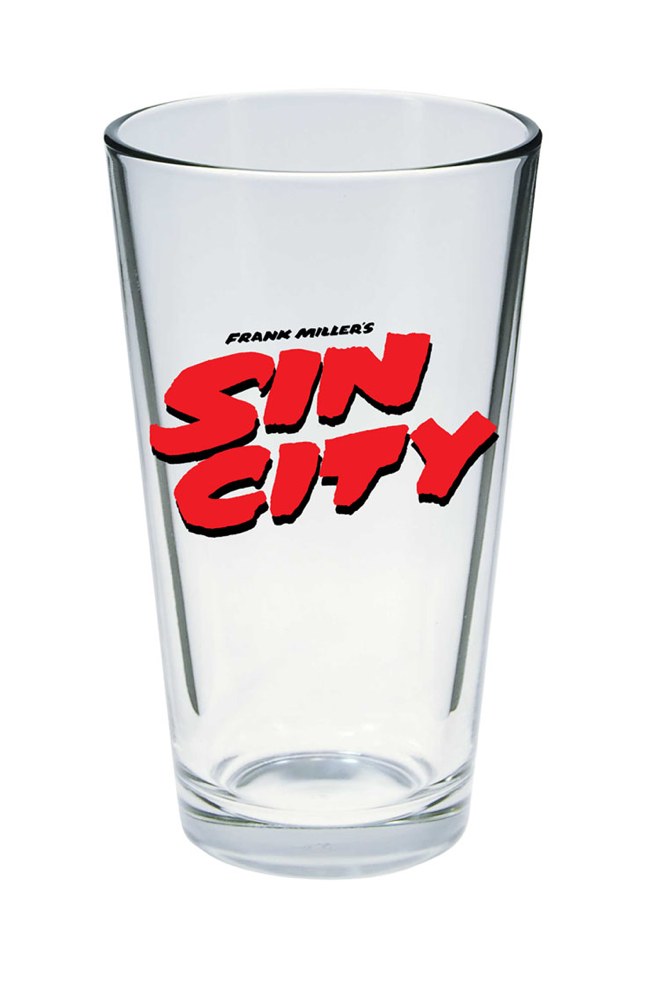 Sin City Glasses to Go Movie Logo Pint Glass  A Diamond Select Toys Release! From Old Town to the Projects, from the Tar Pits to the Docks, drink deep of Sin City in this traditional pint glass. Branded with the Sin City movie logo, you’ll feel like you’re bellying to the bar with Marv himself. Whether you’re in need of a pint of courage or you’ve lost a pint of oil, this will bring you back up to level! Comes packaged in a full-color box. (Item #MAR141954, SRP $9.99)