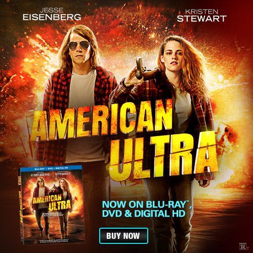 Jesse Eisenberg and Kristen Stewart star in American Ultra, an explosive thrill ride about a small-town slacker who discovers he’s a sleeper agent targeted by CIA operatives. Now available on Blu-ray, DVD & Digital HD. Prizes courtesy of Lionsgate